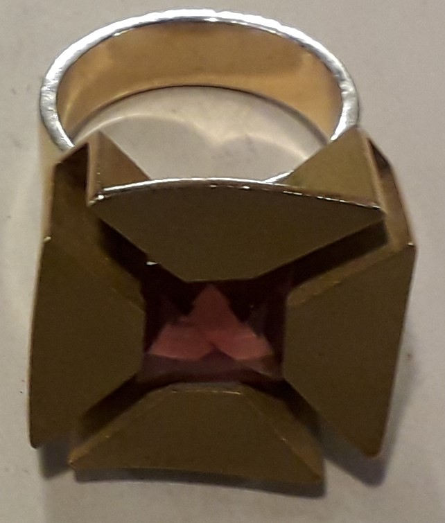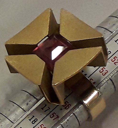 14 karat guldring 1960-erne, rød/lilla sten. Hans