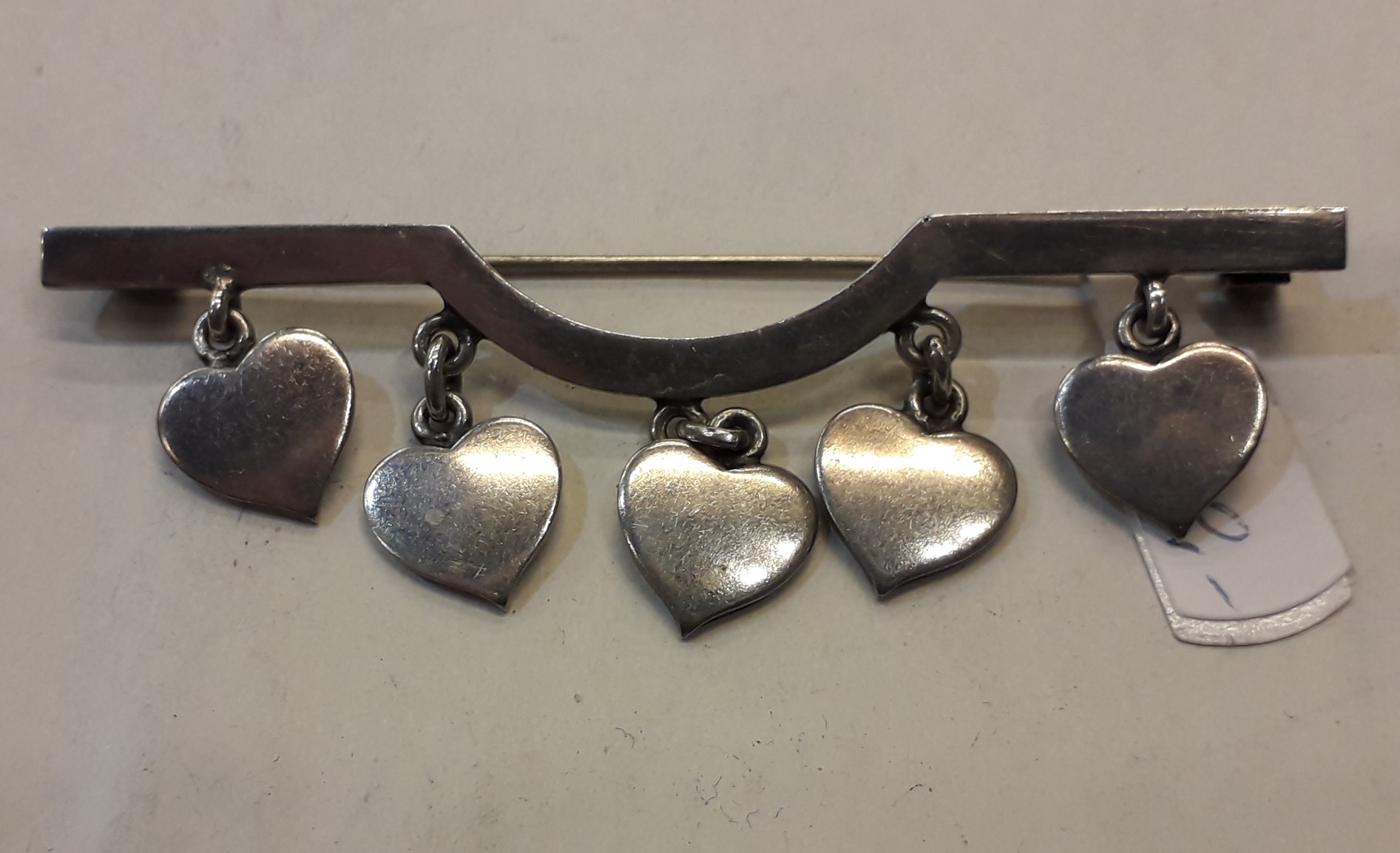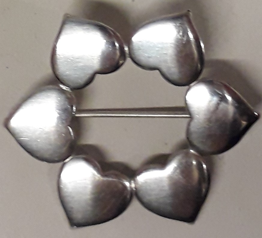 Hans Hansen sterling silver broche med 5 hjerter