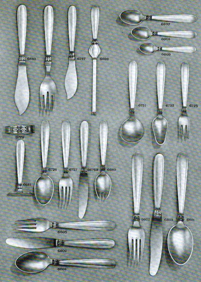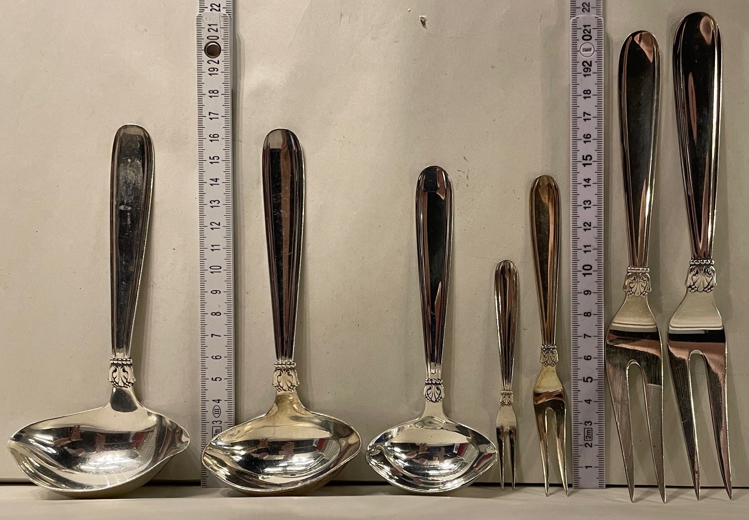 Karina sølvbestik, herover ses nogle af standard modellerne.