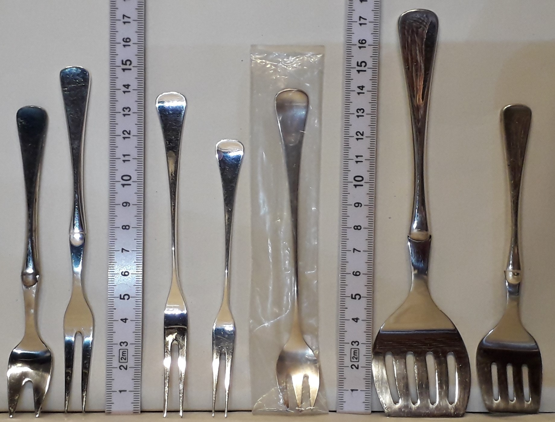 pålægsgaffel (lille+stor) kagegaffel sukkerske syltetøjsske.
