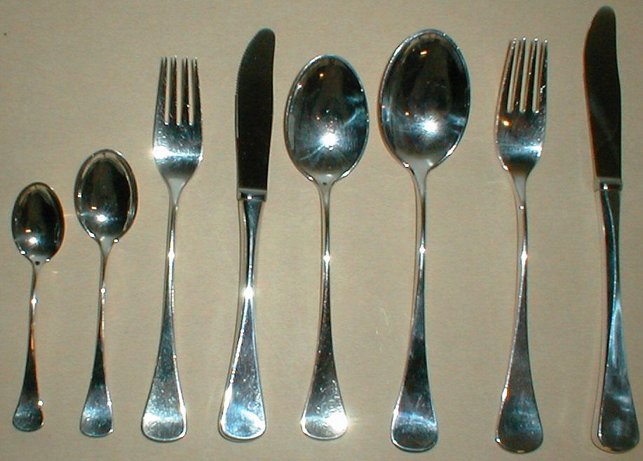 kaffeske teske frokostgaffel frokostkniv dessertske suppeske middagsgaffel middagskniv.